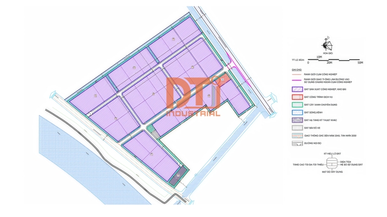 | Chiều cao & mật độ xây dựng | Chiều cao tối đa 25 m (5 tầng); Tỷ lệ xây dựng 70%. CCN An Thọ - Profile (V) | Cho phép xây dựng nhà xưởng nhiều tầng, tối ưu hoá diện tích trong CCN. |
